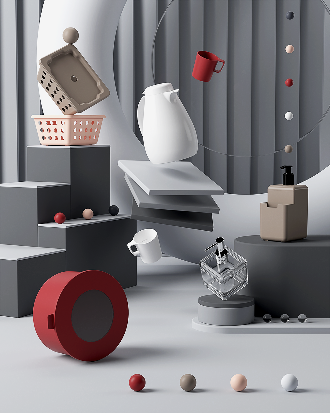 Conjunto de ambientações criadas em 3D para diversos produtos da Coza com o objetivo de divulgar os lançamentos nos catálogos impressos e para utilização nas redes da marca.